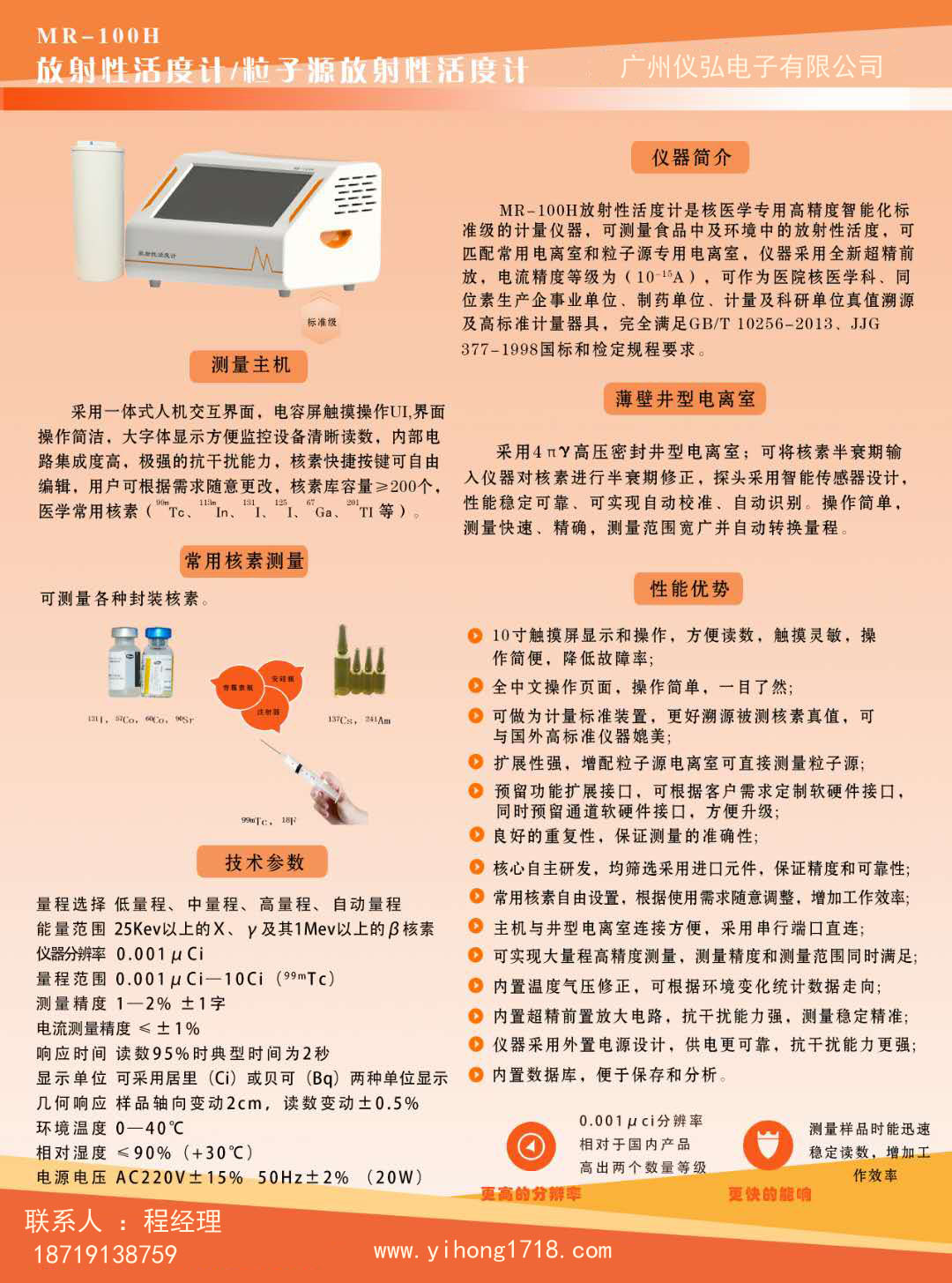 MR-100H放射性活度计是一种定量测量放射性活度的仪器,主要应用于医院核医学科、同位素生产单位、制药单位、科研单位等。